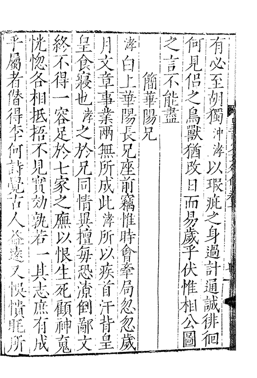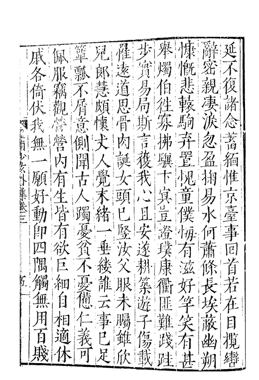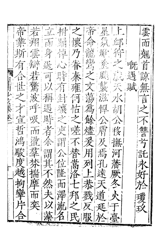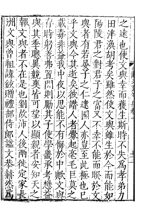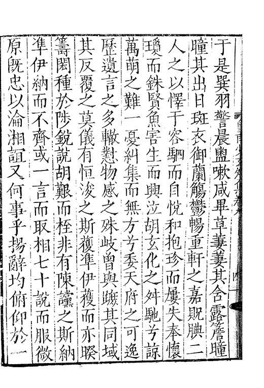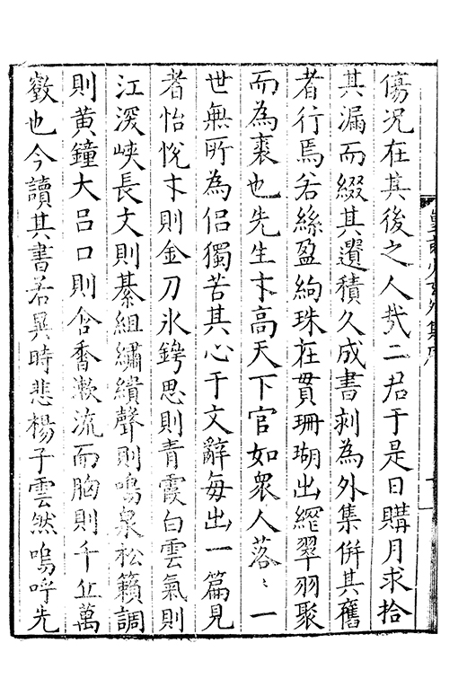斯固通人之所難而獨兼之能不頭顱早白形神易稿者哉兄嘗志在世用每與談古今論豪傑之士則慷慨拊踊不讓徃烈今觀其與華陽長公書亦可以見然以特立不群之志骯髒一世終莫能盡其才是以作愍知嘅遇賦以自寄夫世嘗謂文學之子鮮洪世猷此乃鄙俚不識謨訓執蝘蜓而議神龍者也昔曹植思必凌雲翰俱