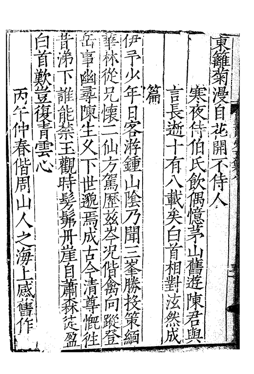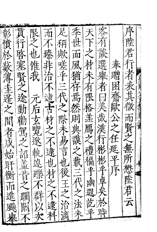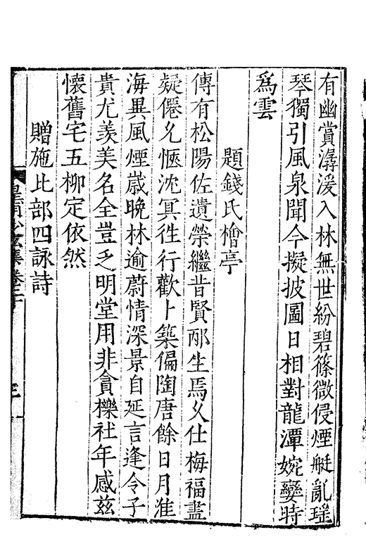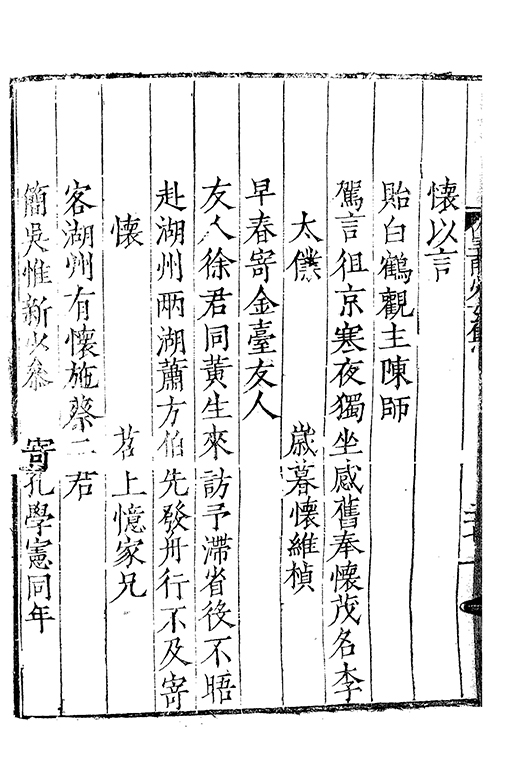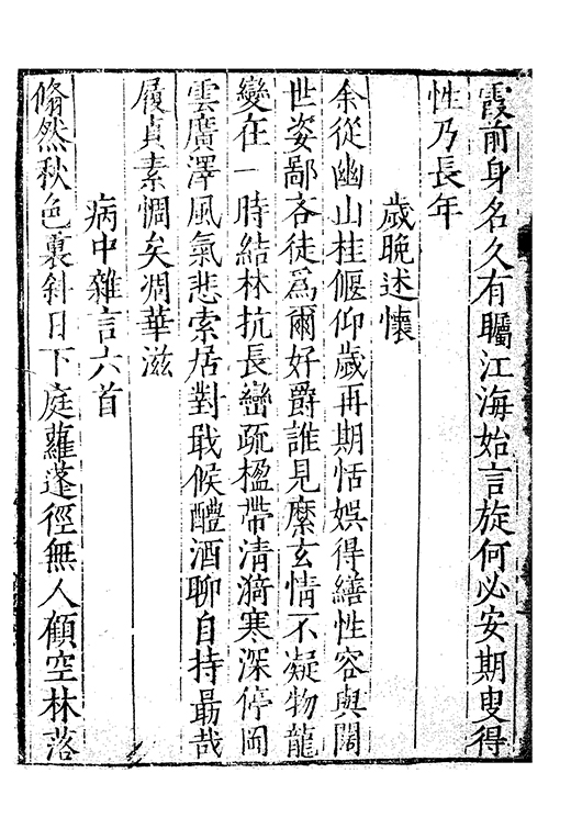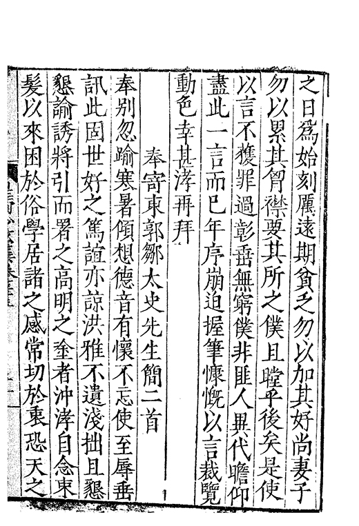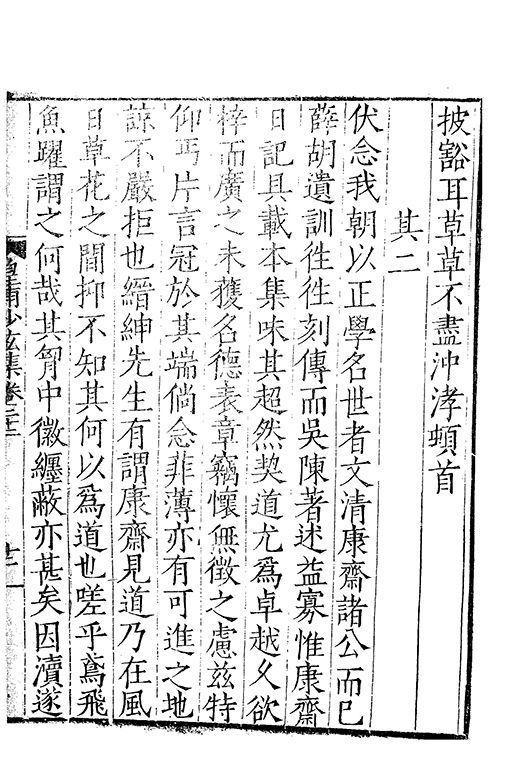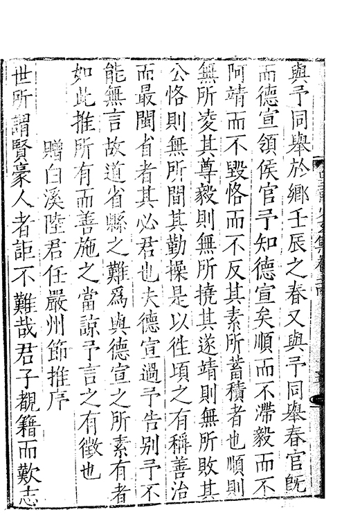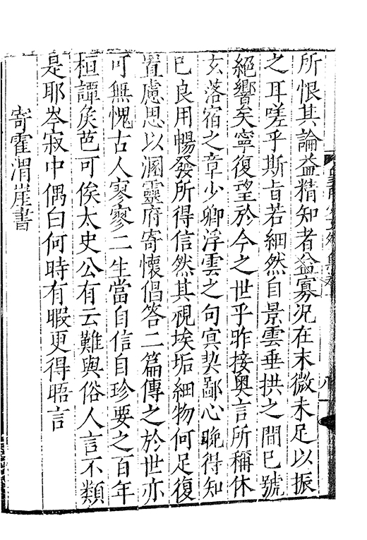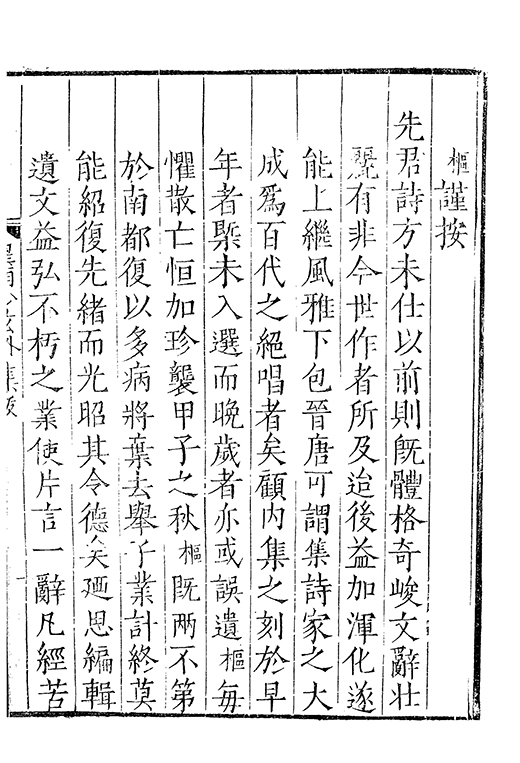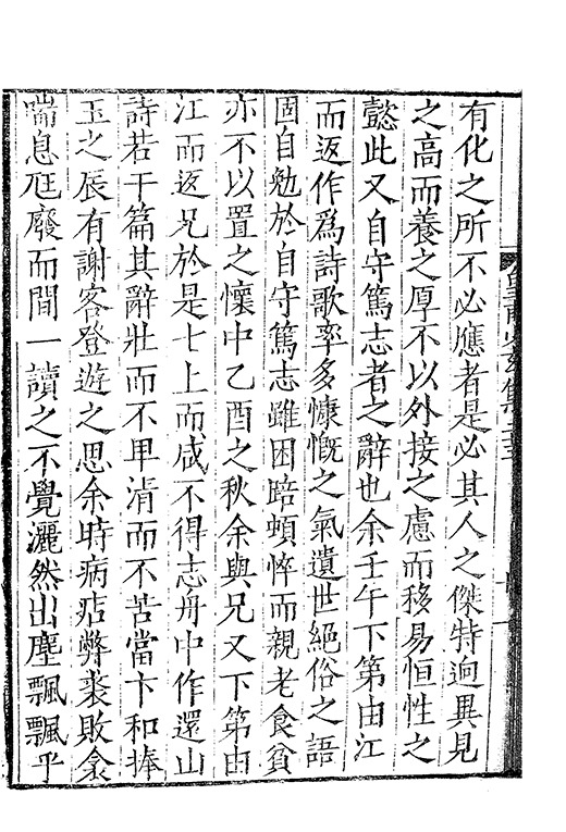 過甚既改服東浙寄余書云將事考槃以卒初志兾與同奬風流益增標勝余方訃太夫人中道而兄以奄逝生平景懐悼嗟何及遂使國家登禪太息於斯文而人倫模楷悵絶於具爾吁其已矣敬序遺編因之寄嘅