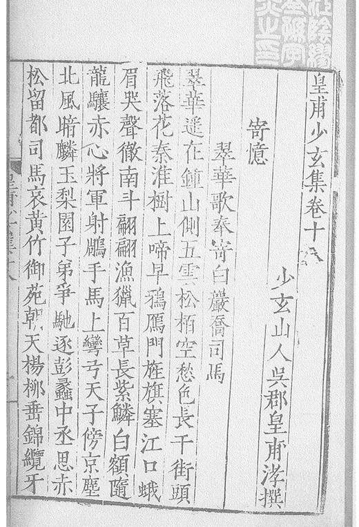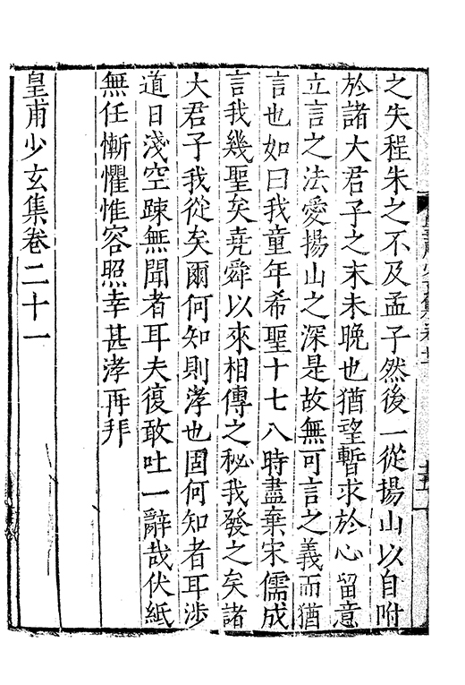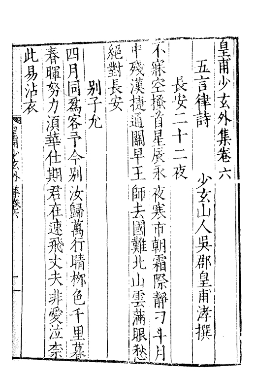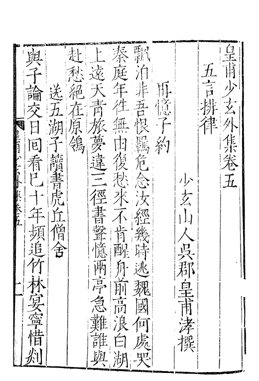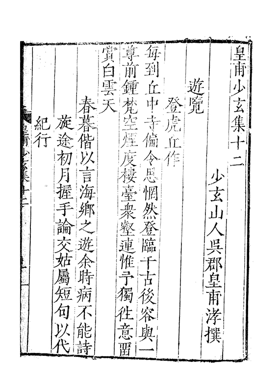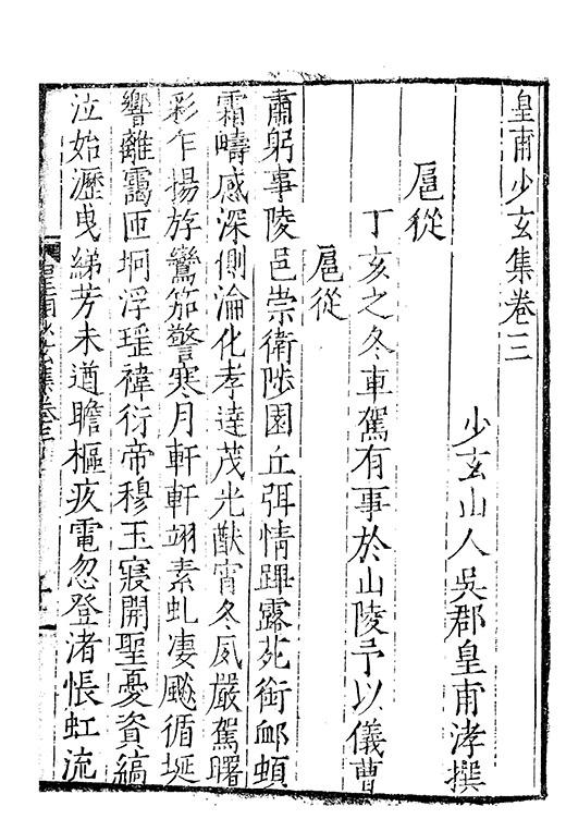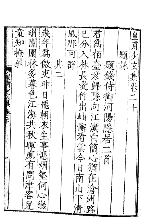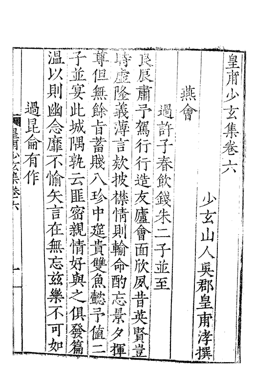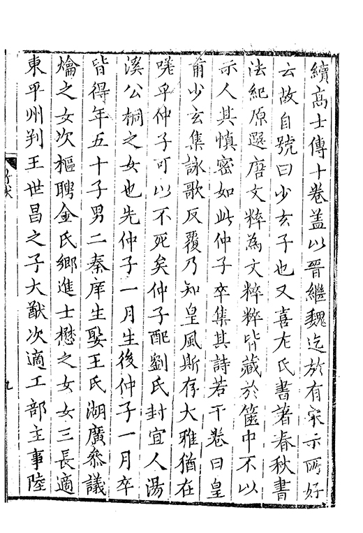 續高士傳十卷盖以晉繼魏迄於有宋示所好云故自號曰少玄子也又喜左氏書著春秋書法紀原選唐文粹為文粹粹皆藏於箧中不以示人其慎密如此仲子卒集其詩若干卷曰皇前少玄集詠歌反覆乃知皇風斯存大雅猶在嗟乎仲子可以不死矣仲子配劉氏封宜人湯溪公桐之女也先仲子一月生後仲子一月卒皆得年五十子男二秦庠生娶王氏湖廣叅議爚之女次樞聘金氏鄉進士懋之女女三長適東平州判王世昌之子大猷次適工部主事陸