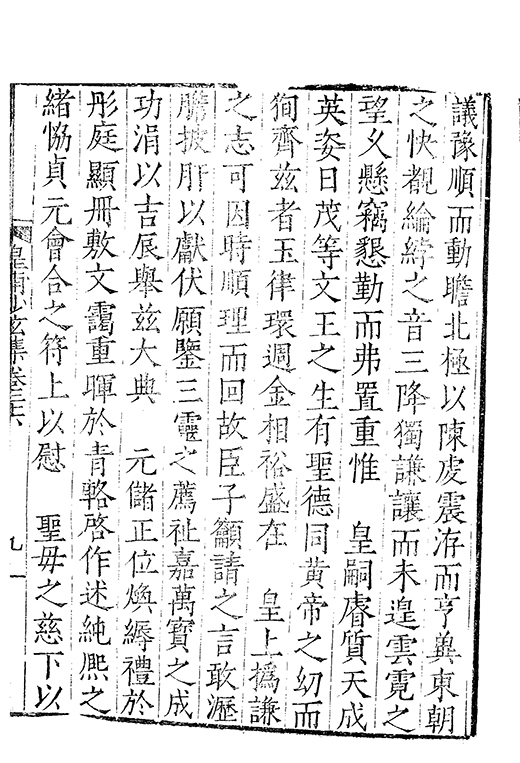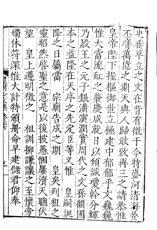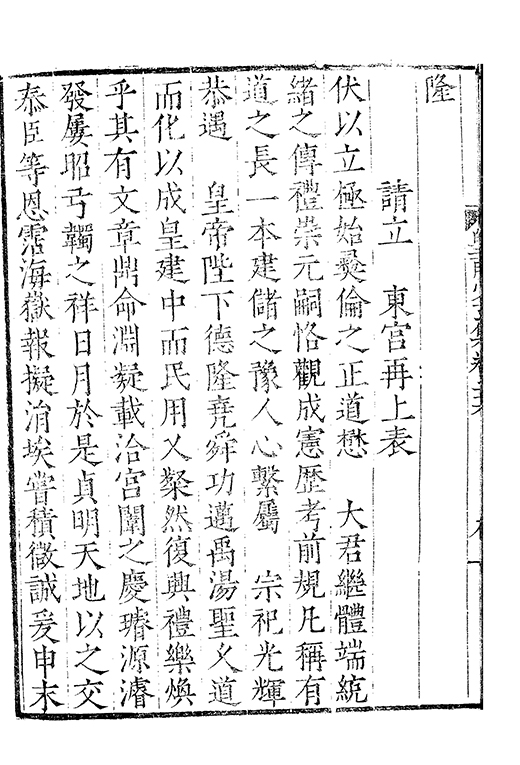 者是歲皇子生進封順慶公中憲大夫太夫人恭人公乆落聀至是以新階復故銜拜命感恱沈痾為已丁酉廷臣請建儲多以言得罪不敢復出言宰相率宗伯之屬求嫺于文辭者僉曰儀制員外皇甫涍能乃試令屬草槖既成稱善上之無所忤於是具九疏集廷臣上請帝覽疏大恱太子遂立涍之功也戊戌拜主客郎中諸蕃夷修軄貢者傅食京師徃徃經歲供億不貲仲子奏報不踰旬省費數十千萬時亦□多挾蕃夷入貢非制下令禁絕之朶顏捍衛