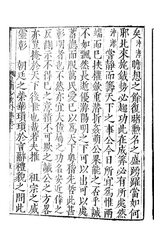北邉而賞幣惡痛恨不為力白宗伯諭內庫擇善幣與之皆懽呼稱萬歲車駕南廵盡驅蕃夷出関外以弭內憂勢者謂非有經國遠猷莫及此己亥詔選東宮官屬不知宰相素以建儲九疏屬之涍矣而假途望龍者施鑽孿彀以須一不遂則脣吻齮齕之故朝疏入而暮劾至焉時仲子以主客郎中改春坊司直帝持劾召宰相問所劾與所舉者當否曰是固妬娼者之搆為詭辭然亦未盡爾也顧公鼎臣首先對曰若皇甫涍者臣知之此臣鄉人之篤行力學者