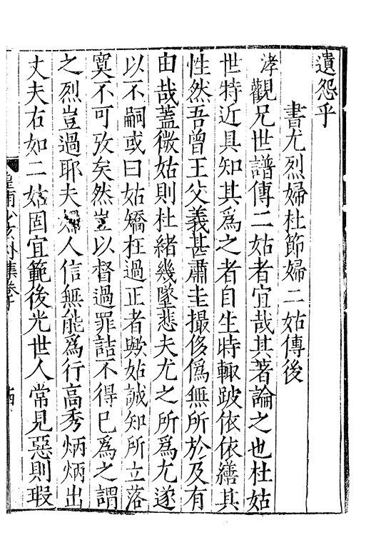 涍觀兄世譜傳二姑者宜哉其著論之也杜姑世特近具知其為之者自生時輒跛依依繕其性然吾曾王父義甚肅圭撮侈偽無所於及有由哉蓋微姑則杜緒幾墜悲夫尤之所為尤遂以不嗣或曰姑矯枉過正者歟姑誠知所立落寞不可攷矣然豈以督過罪詰不得已為之謂之烈豈過耶夫婦人信無能為行高秀炳炳出丈夫右如二姑固宜範後光世人常見惡則瑕