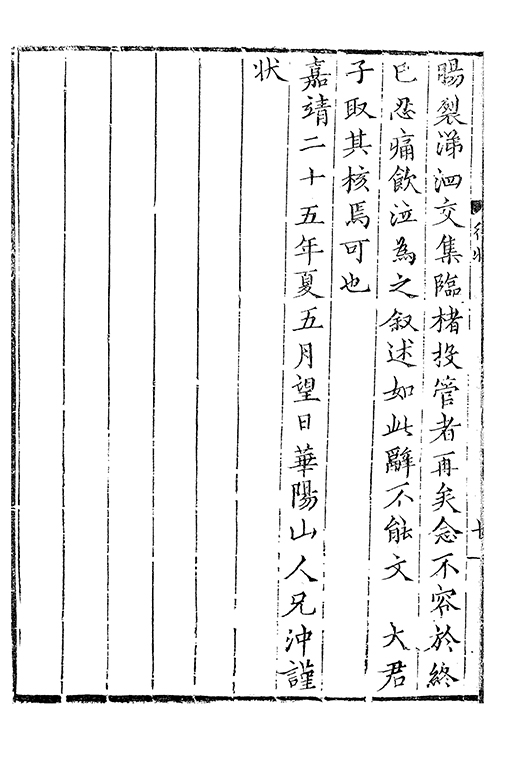 嘉靖二十五年夏五月望日華陽山人兄沖謹狀