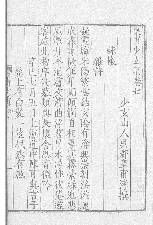 辛亥之春姪秦樞遺書荊南以少玄成集寄余為序啟而誦之宛如生平聆其詠嘆傷哉懐也灑泣興思夫兄夙禀純姿卓負淵識誕秀吾宗寔惟殊祥異表况乃宏覽載籍研精雅頌沉思旁索日無怠晷夜或忘寢九流衆技之書海上名山之旨石壁金匱之藏眞文鴻寶之秘罔不游心博摠