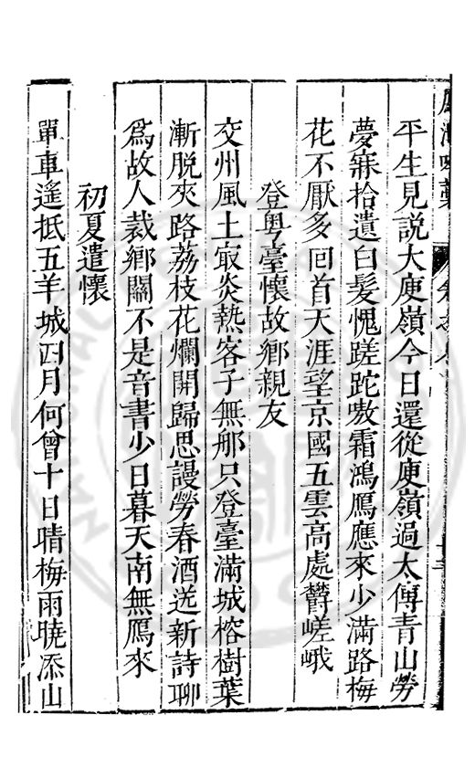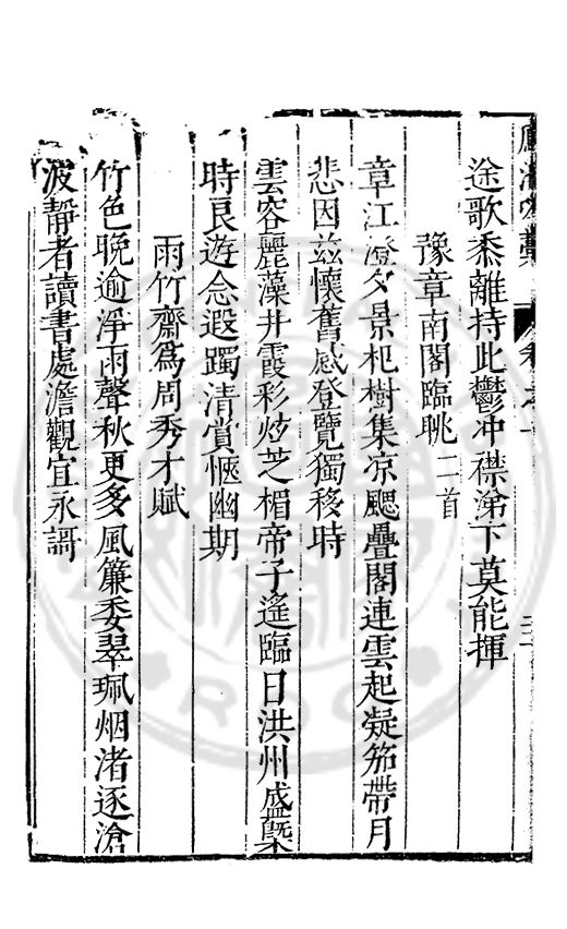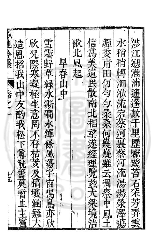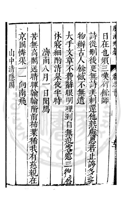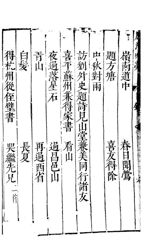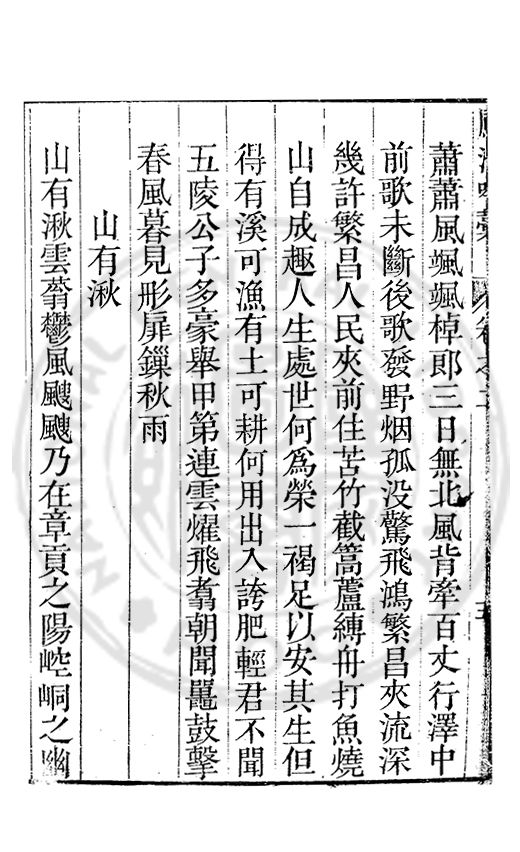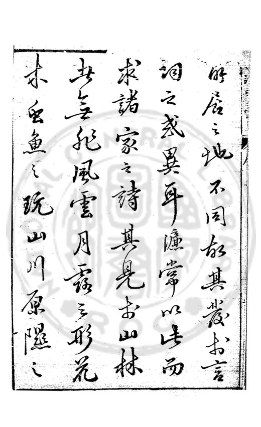 所居之地不同故其發扵言詞之或異耳濂常以此而求諸家之詩其見扵山林者無非風雲月露之形花木虫魚之玩山川原隰之