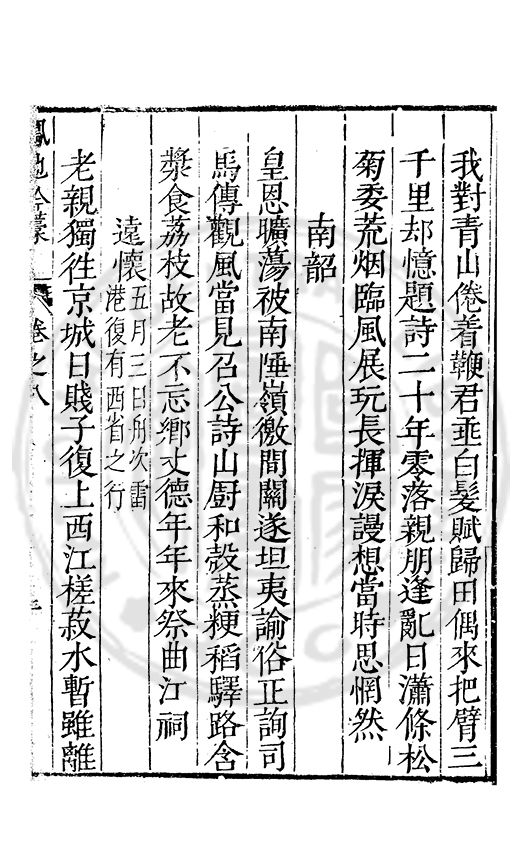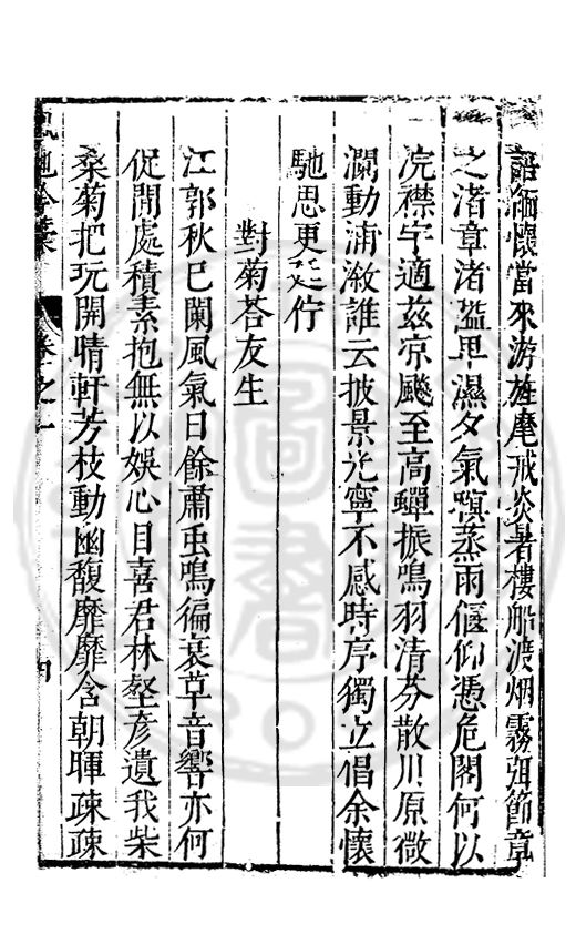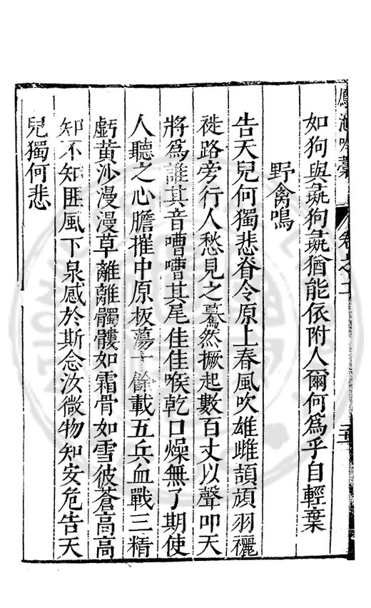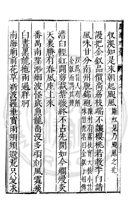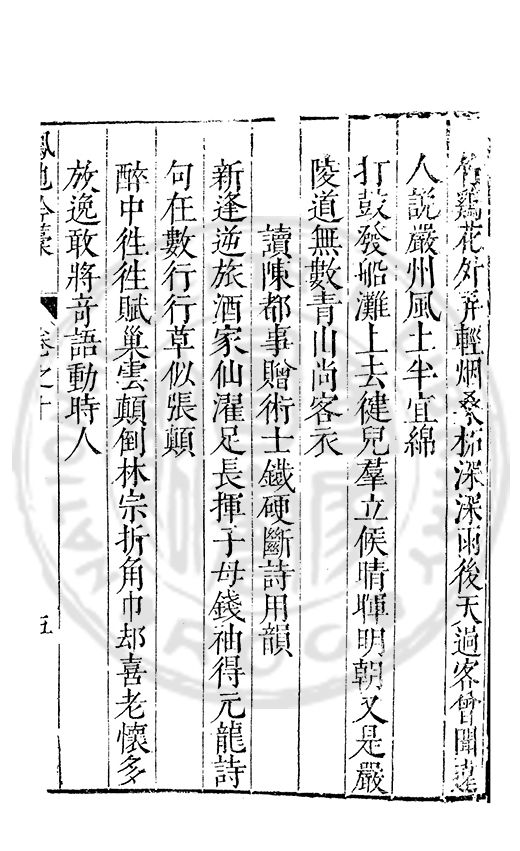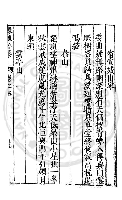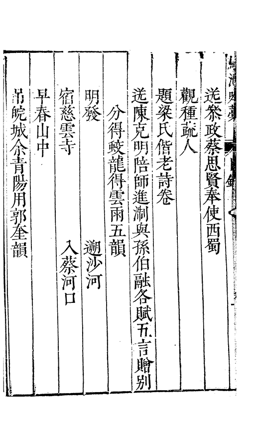 所居之地不同故其發扵言詞之或異耳濂常以此而求諸家之詩其見扵山林者無非風雲月露之形花木虫魚之玩山川原隰之