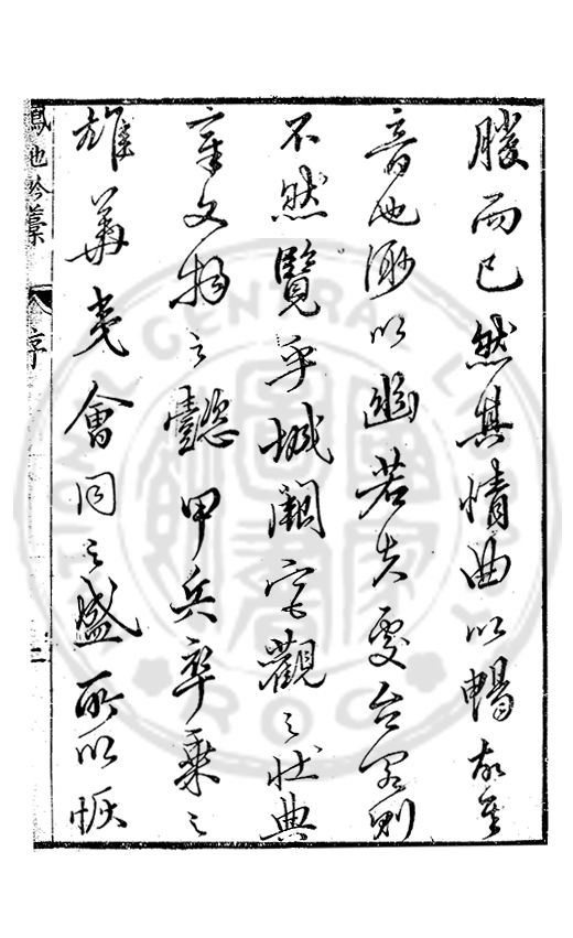 勝而已然其情曲以暢故其音也渺以幽若夫處台閣則不然覽乎城闕宫觀之壯典章文物之懿甲兵卒乗之雄華夷會同之盛所以恢