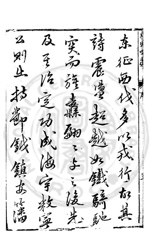 東征西伐多以戎行故其詩震盪超越如鐵騎馳突而旗纛翩翩與之後先及其治定功成海宇敉寧公則出持節鉞鎮安藩