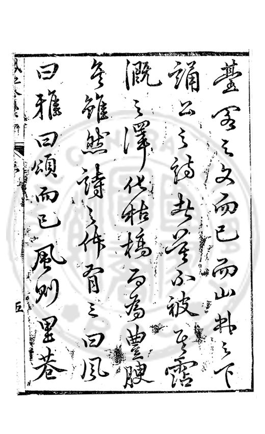 臺閣之文而已而山林之下誦公之詩者莫不被其霑溉之澤化枯槁而為豐腴矣雖然詩之體有三曰風曰雅曰頌而已風則里巷