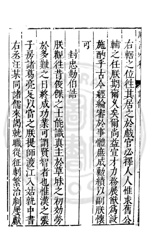 朕觀徃昔俊傑之士能識真主於草昧之初效勞於多難之日終成功業可謂賢智者也惟漢之張子房諸葛亮足以當之朕提師渡江入姑孰中書右丞汪某同諸儒來謁就職從征剸繁治劇屢獻