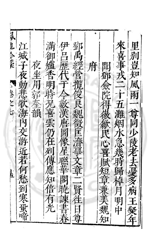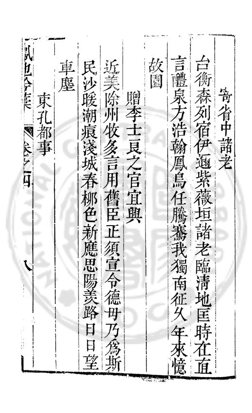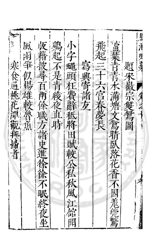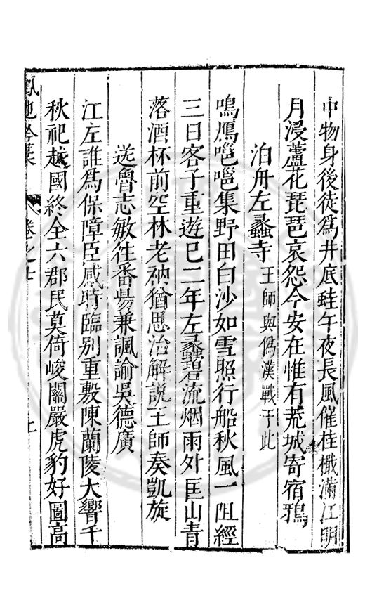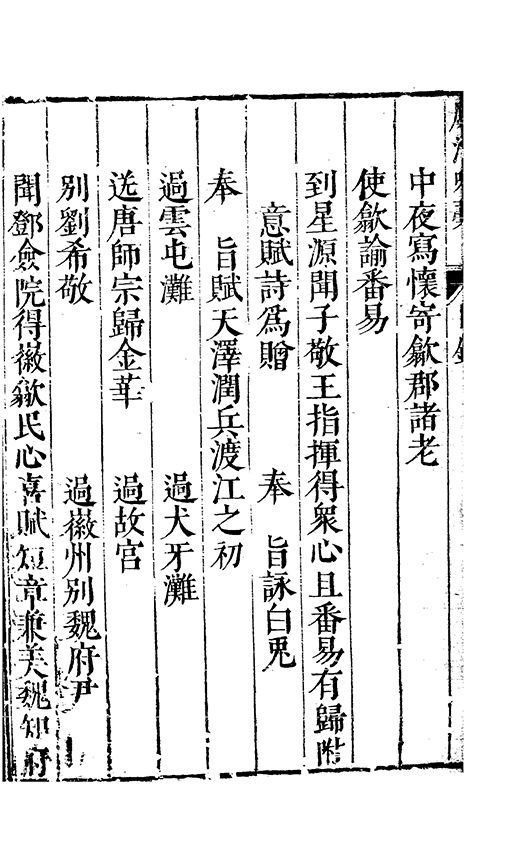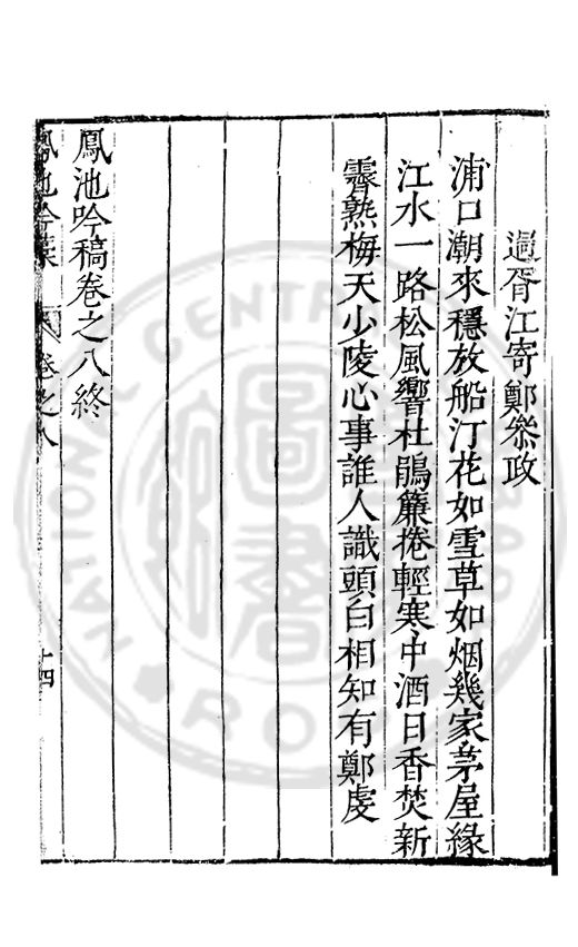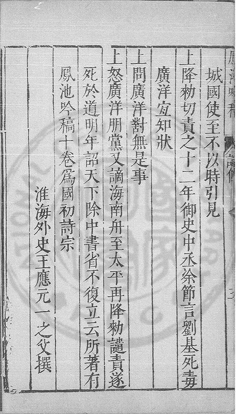 上怒廣洋朋黨又謫海南舟至太平在降勑譴責遂死於道明年詔天下除中書省不復立云所著有鳳池吟稿十卷為國初詩宗