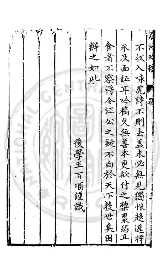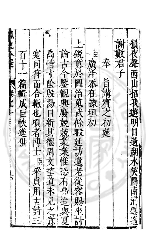 而興王之運至音斯完有如公者受丞弼之任吟咏所及無非可以宣教化而弼皇猷有物有則民彛甚大非止昔人所謂