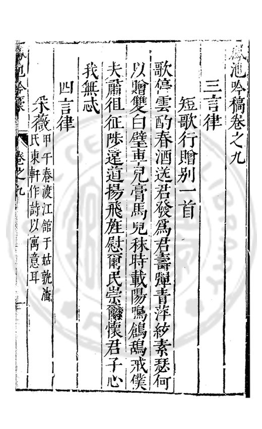 恵鳳池吟稿汪公名迹久湮聞扵後者賴有文字