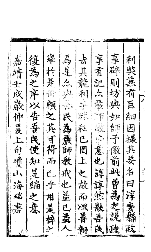 嘉靖壬戌仲夏朔日瓊山海瑞國開甫書