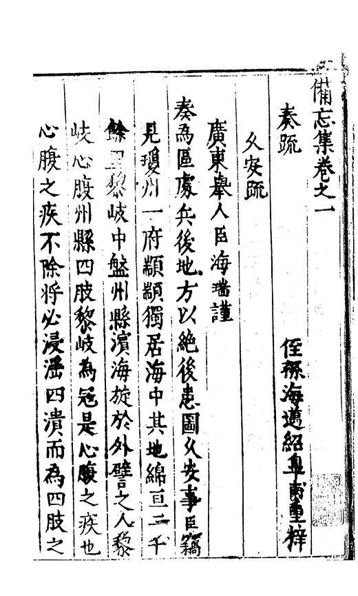 奏疏侄孫海邁紹阜甫重梓
