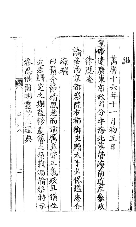 賢而化俗爾南京都察院右都御史海瑞明經舊