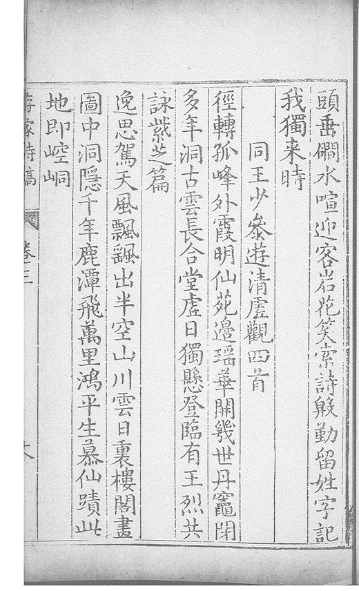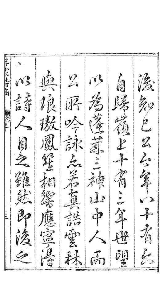 人者徃来海上相與倡和共明此道聴其所談亦不甚觧平生得詩總之不下千篇門人李生善楷書因命𠬧掌及余宦京師李生病故此物亦隨化去子姪軰復隨𠁅抄録無論嵗月朝