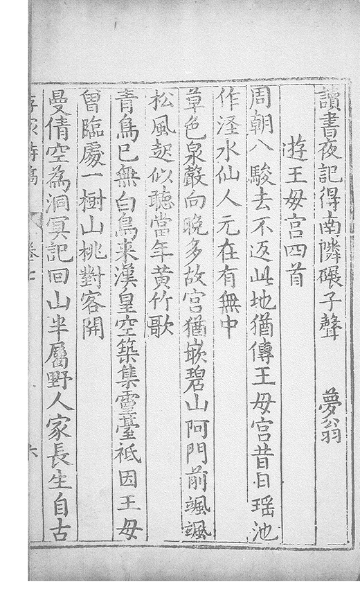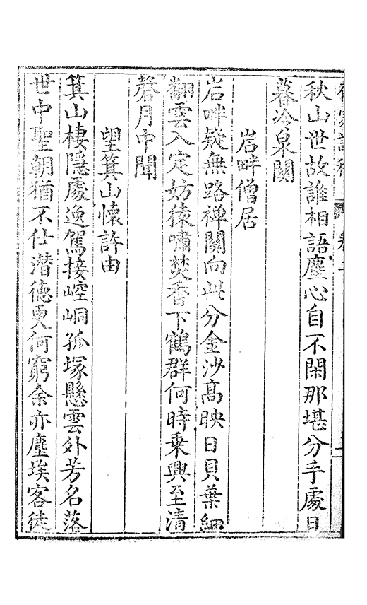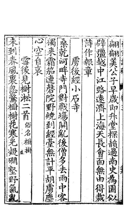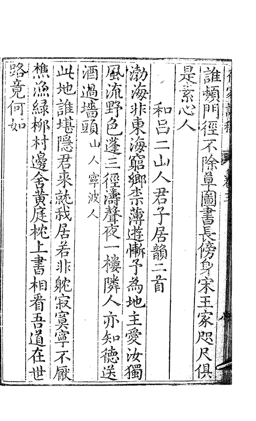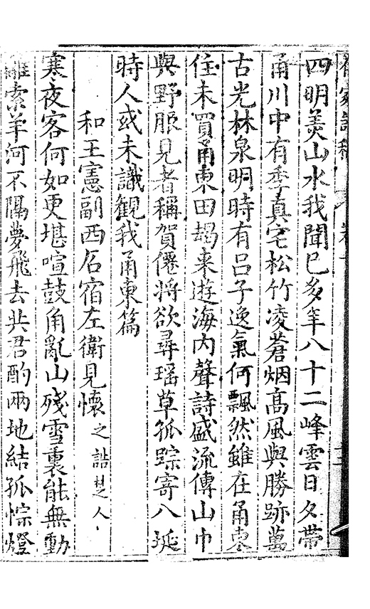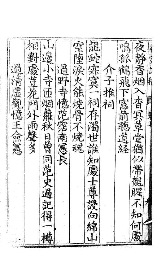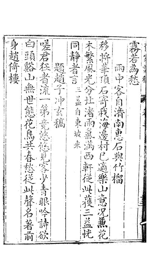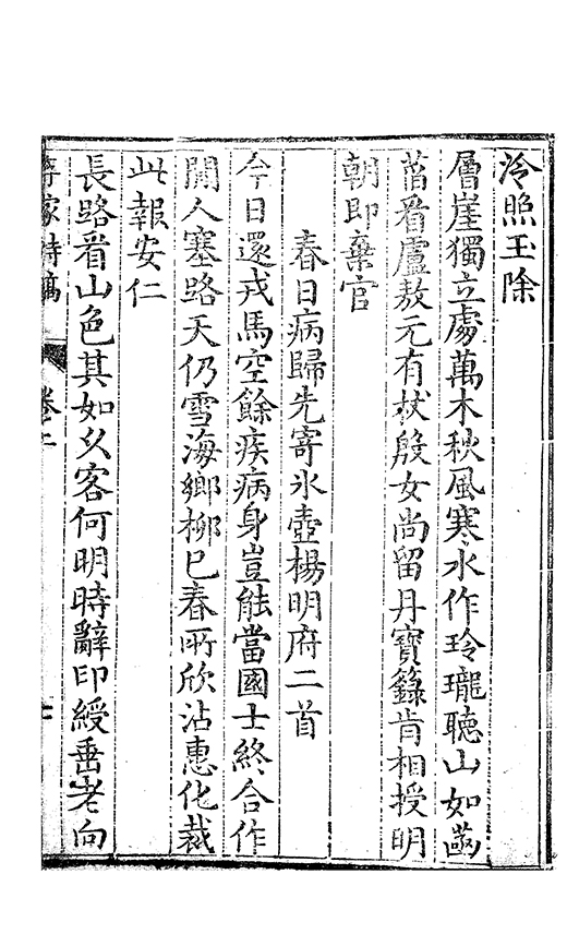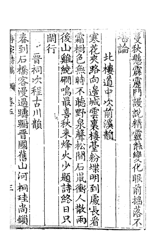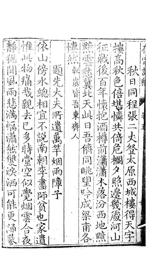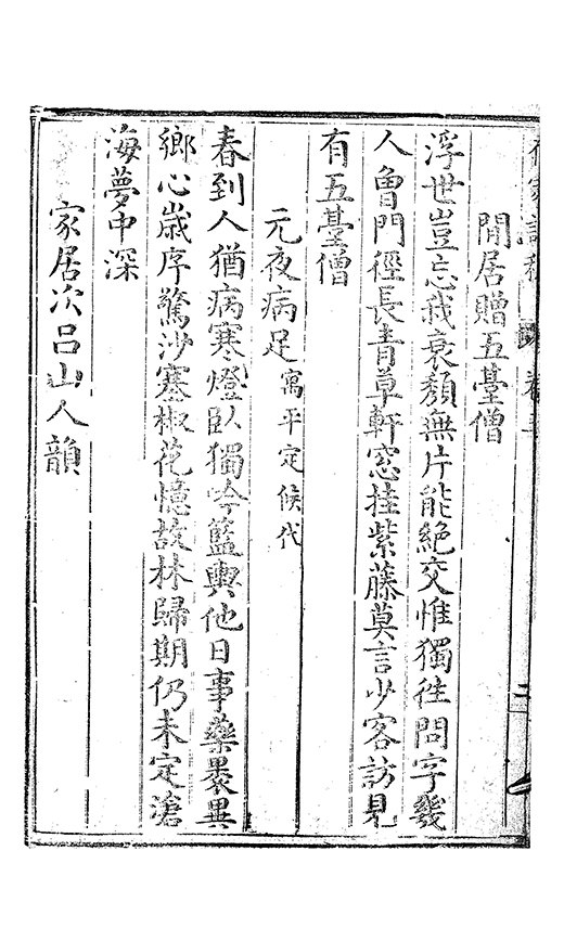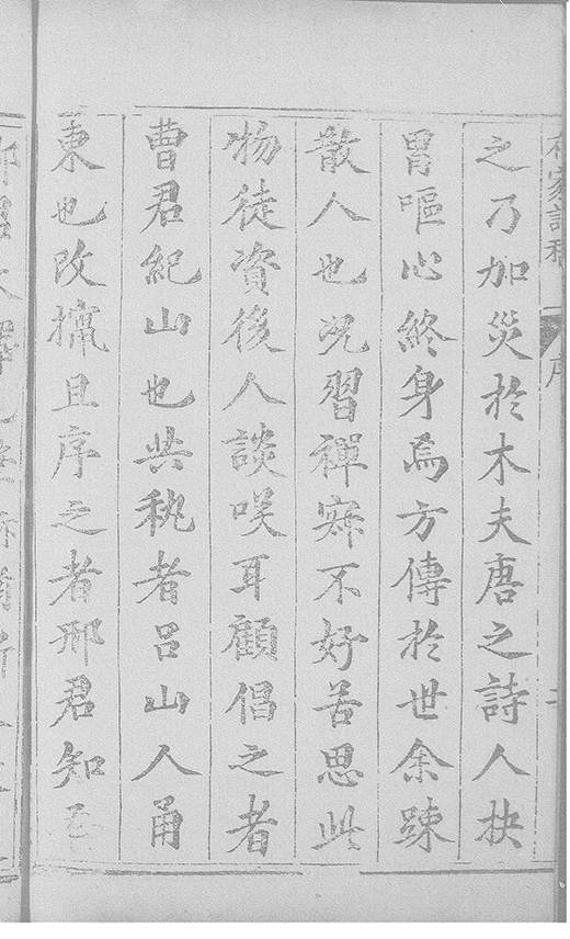 之乃加災扵木夫唐之詩人抉胃嘔心終身焉方傳扵世余踈㪚人也况習禪𡨜不好苦思此物徒資後人談咲耳顧倡之者曹君紀山也共秇者呂山人甬東也改竄且序之者邢君知吾