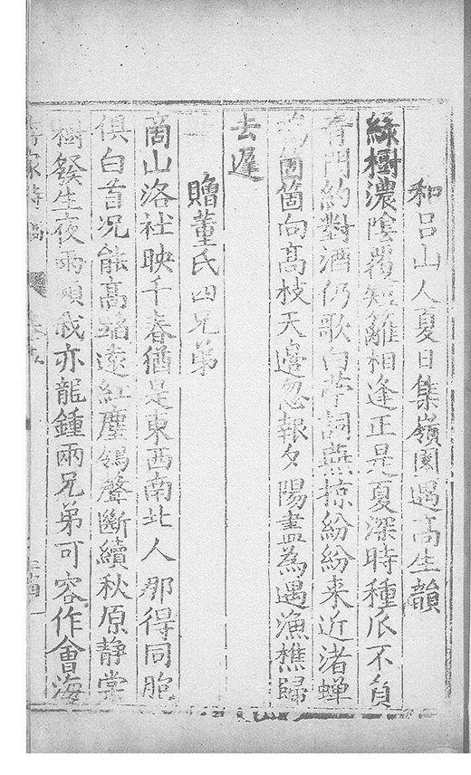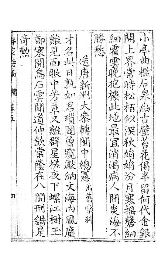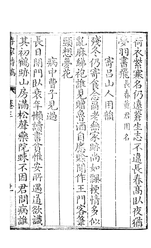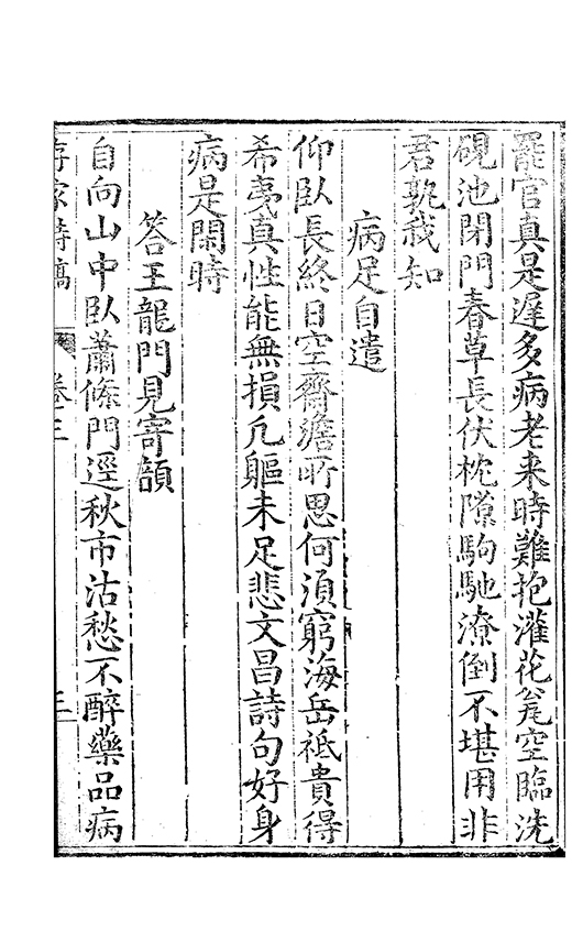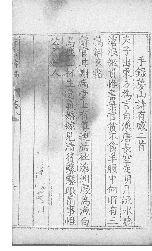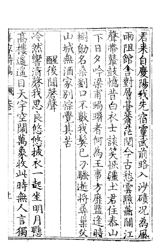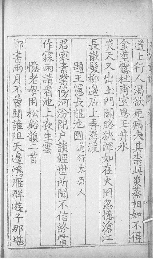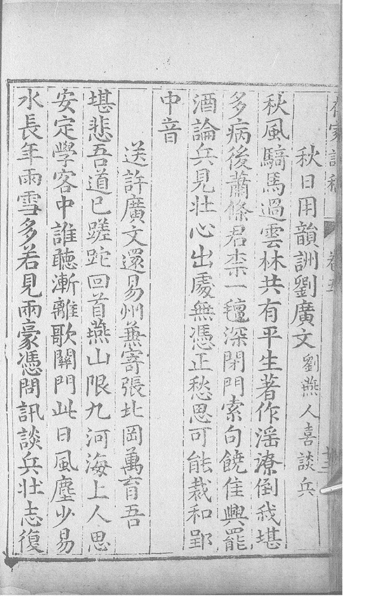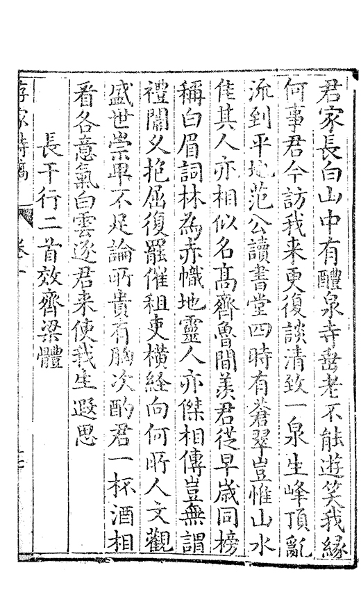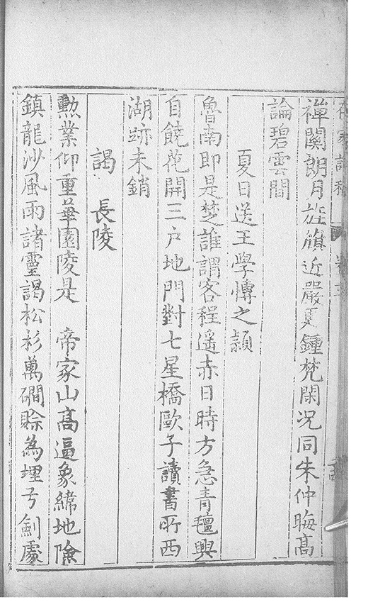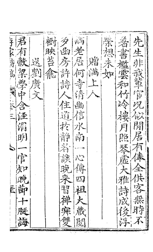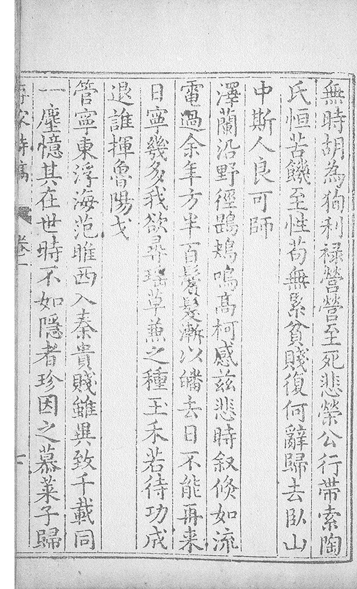 之乃加災扵木夫唐之詩人抉胃嘔心終身焉方傳扵世余踈㪚人也况習禪𡨜不好苦思此物徒資後人談咲耳顧倡之者曹君紀山也共秇者呂山人甬東也改竄且序之者邢君知吾
