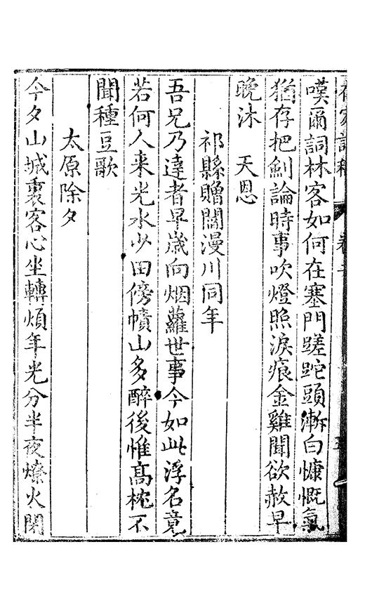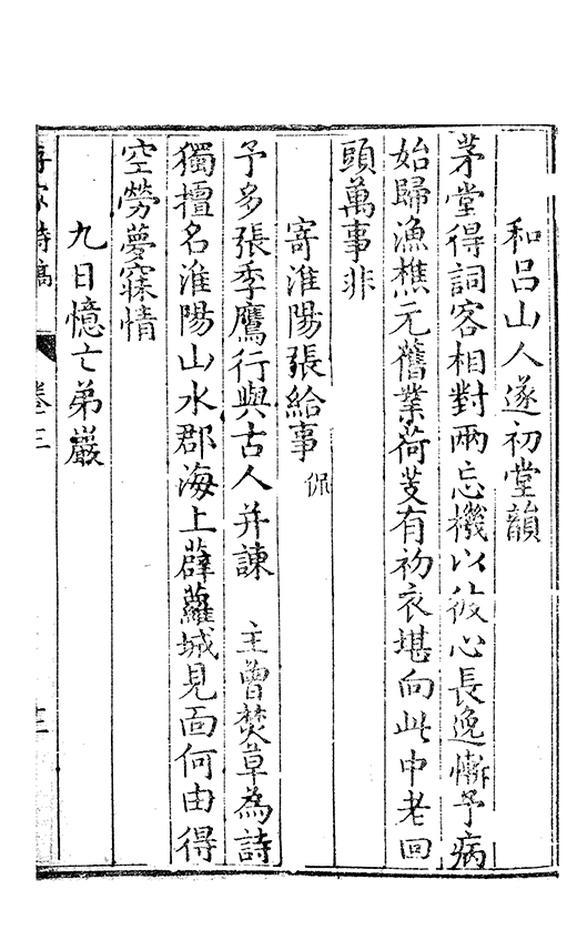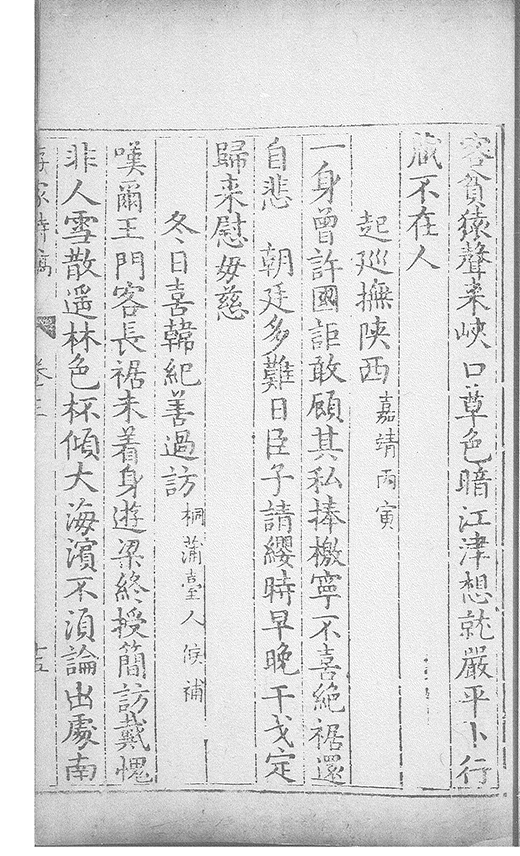 野得詩六百餘篇亦多矣乃就正於臨邑邢侍御知吾為更數𠁅加之評品今年舎弟岑以公事寓維揚將此稿再就正扵雲夢鄒君大澤鄒君舊銓部郎與余有共事之雅改竄逾多又序