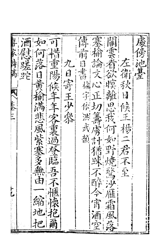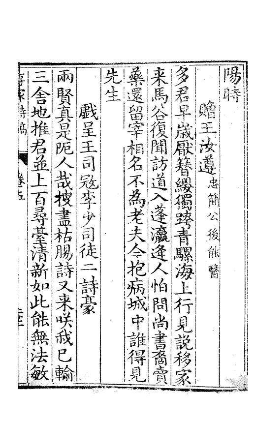 海上以踐前言而公病不能構思有日月逝矣之嘆山人乃扵門人李子𠁅淂晋陽諸稿更加選吹李子云公有作徃徃棄去故㪽𠬧止此山人在上谷一言及公三軍無不加額入公里門又聞人嘖嘖稱賢為天然默相之為國家翊無疆之業而况區區文藝耶書此扵椘之瑶蕐館以俟他日