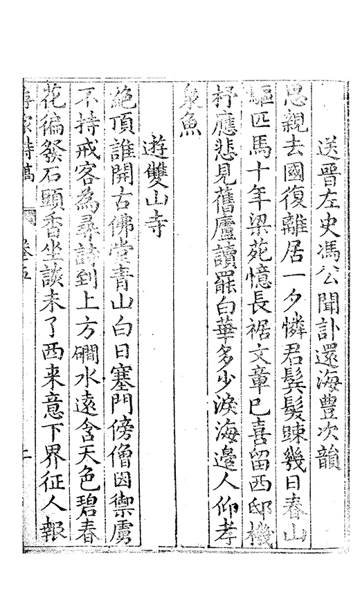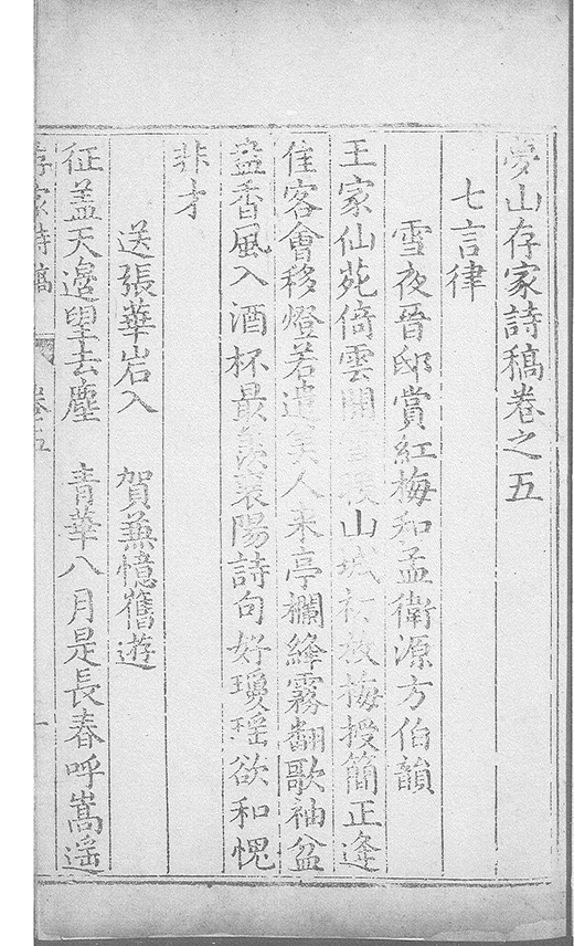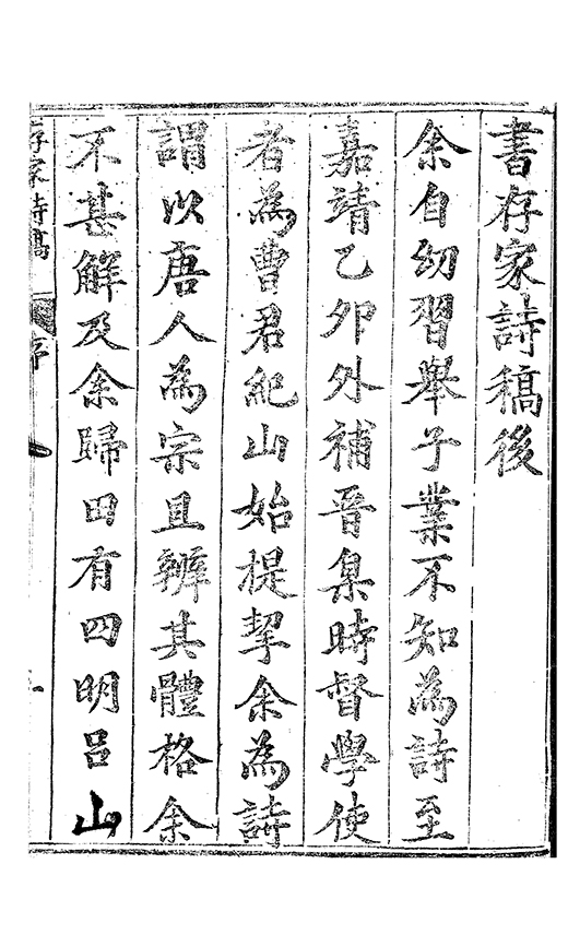 余自㓜習舉子業不知為詩至嘉靖乙夘外補晋臬時督學使者為曹君紀山始提挈余為詩謂以唐人為宗且辨其體格余不甚觧及余歸田有四明呂山