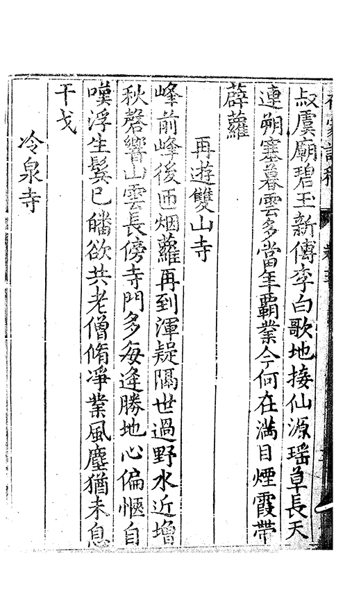 此寺置何年大唐貞觀嵗中蔵白石碣上刻前賢字地居古河邉門臨野無際憶我讀書時寒榻同僧睡
