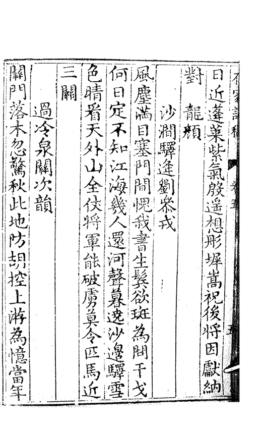 烽火連髙塞旌旗映晩霞登城㸔漢壘㡬𠁅聴胡笳瀚海頻傳檄嫖姚始建牙殘春榆柳動入夜鼓鼙撾白首三年客青山萬里家邉塵何日