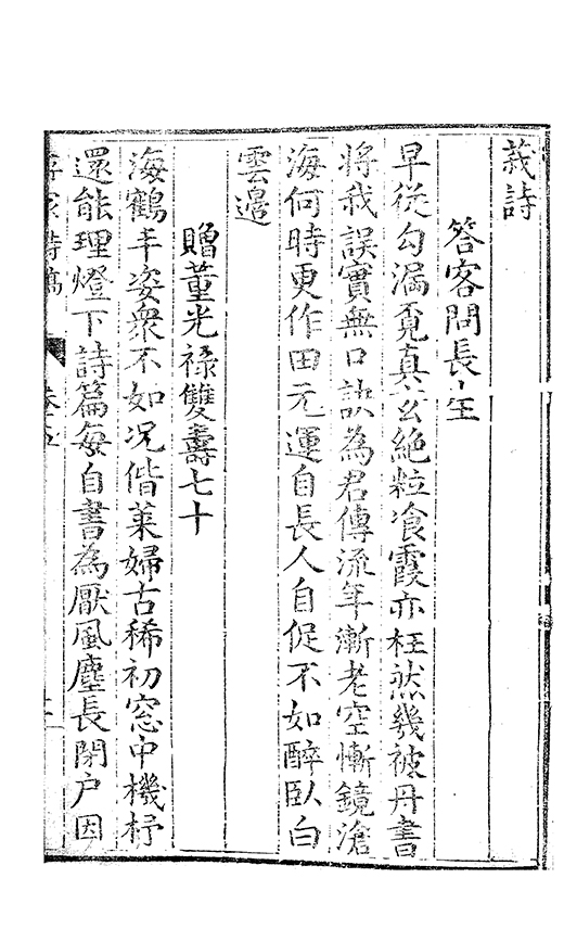 後知己公今年八十有六自歸嶺上十有三年世望以為蓬萊三神山中人而公㪽吟詠□若真誥雲林與琅璈鳳笙相響應寧得以詩人目之雖然即後之