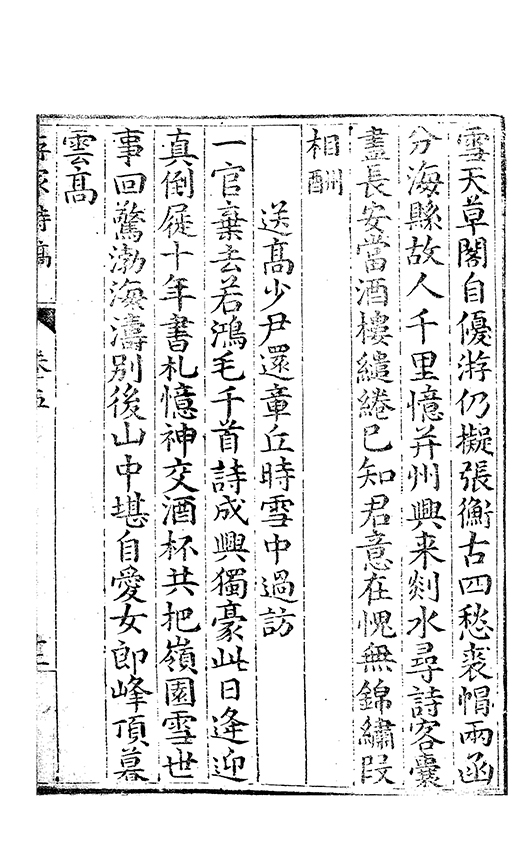 振藻江湖裏聲名到𠁅聞惟知崇隐節不肯慕竒勲靣帶烟霞色身将鸞鶴羣風流郭有道詩韻沈休文投轄嗟何晩論交意已勤相期携手去岳頂坐㸔雲