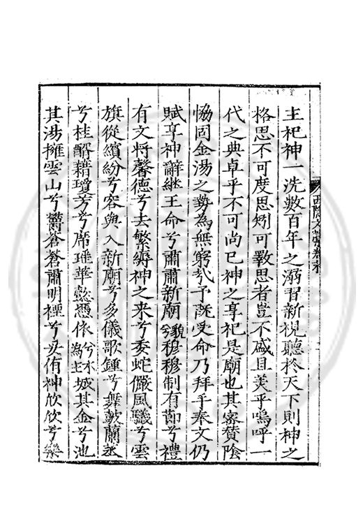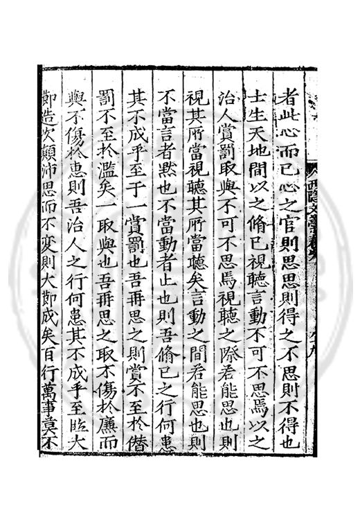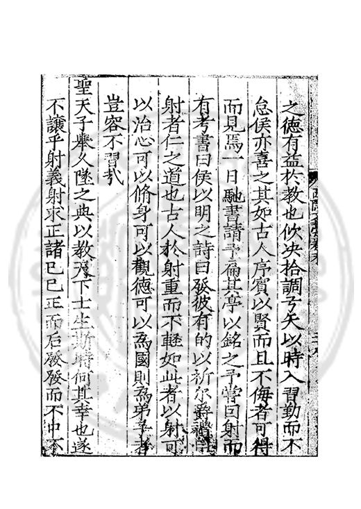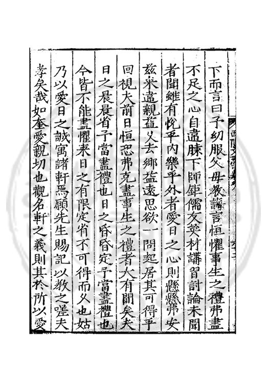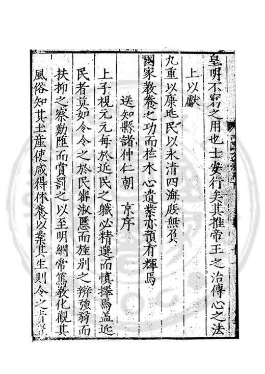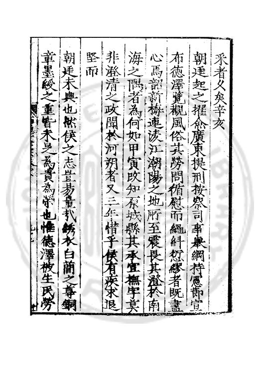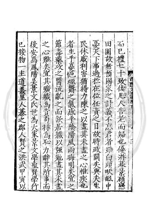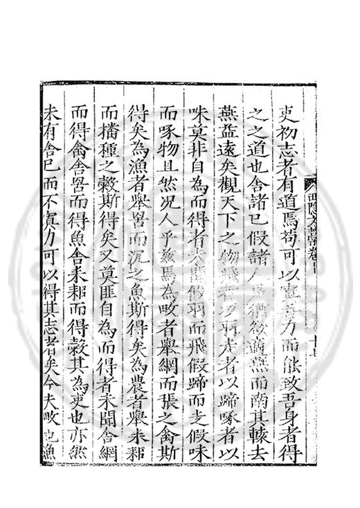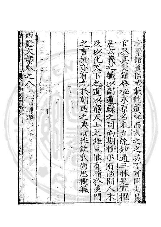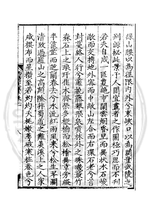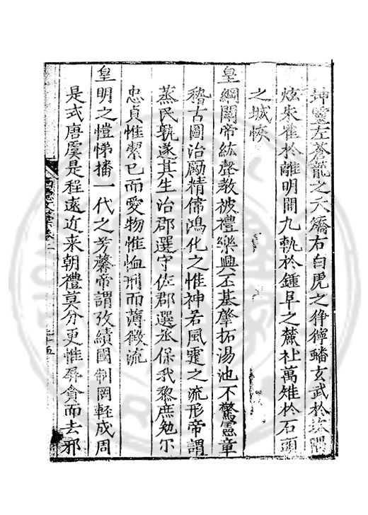 揚于羣蟄應昌眀于王國範埏埴于蒸髦赫赫焞焞烈烈訇訇誠所謂經國之大業不朽之盛事者乎寄之無瑕而昭之无極豈不偉哉盖鈞廣英咸糺縵輝媚固非靡靡下里爭耀爝光爾也冠緌佩璲之中而有甘石摯野者出必能象而書之聆而冩之用輝煌于道化振響于身名豈曰小補之哉豈曰小補之哉
