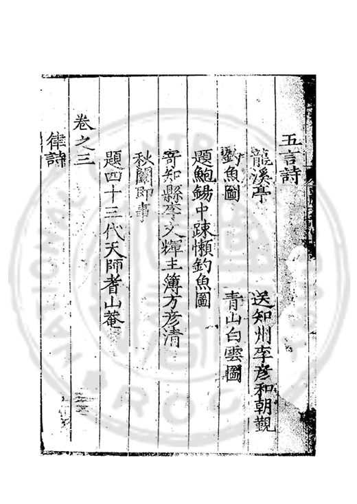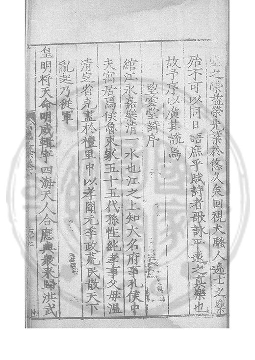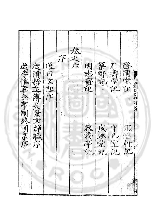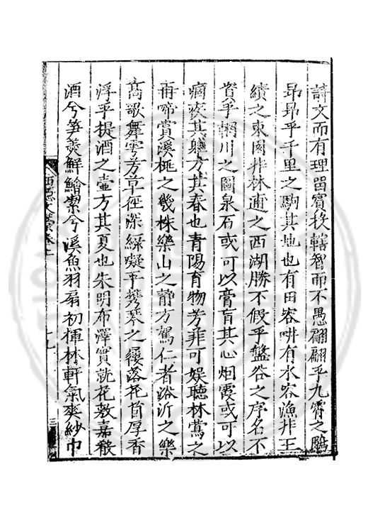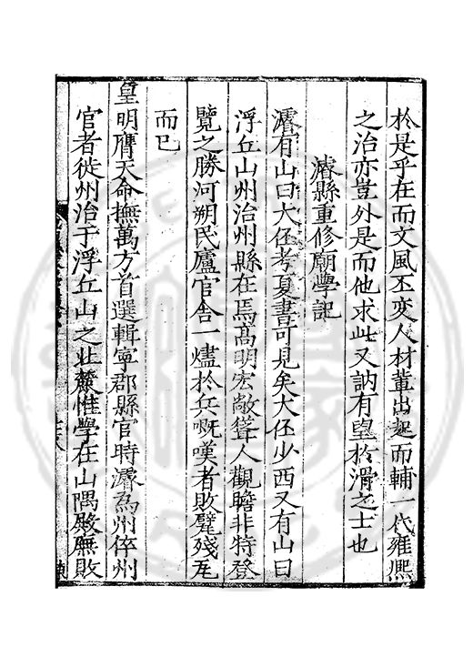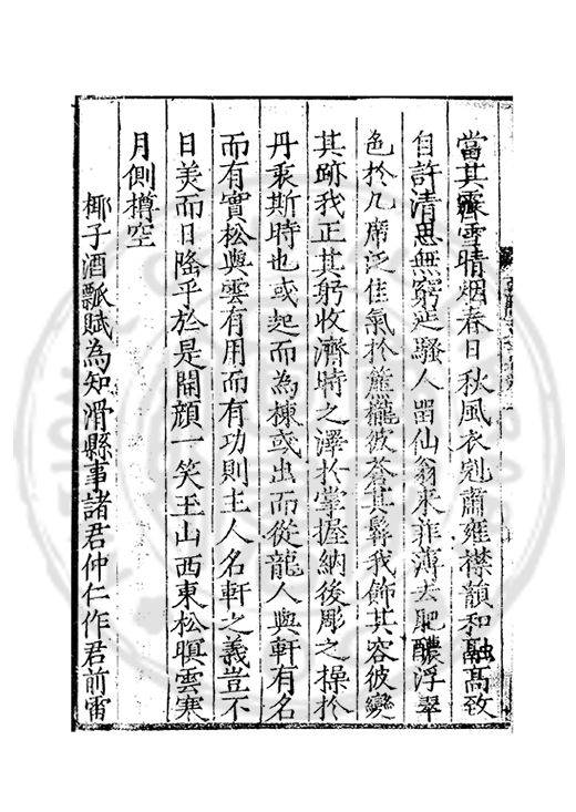 憲節顧眀府公篤文嗜古討幽彰教予持而上之惠徼弁首教言遂趣工複鏤用弘布焉粤惟兹滑分躔東璧輝應圖書古稱美秀而文多君子地也負巘挾