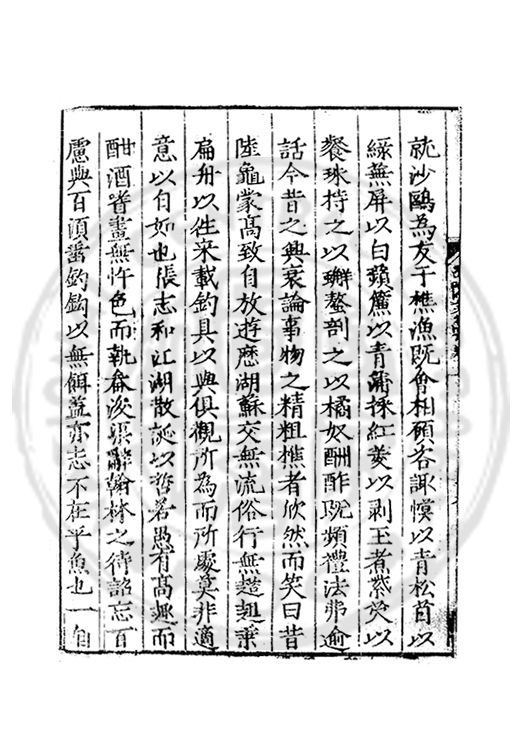 國子先生遊乎太素之天沐乎土階之化醉周孔之六經窮羲文之八卦飄揚於霄漢之間笑談於閭閻之下托茅屋之白雲寄幽情於圖畫諸生有問於國