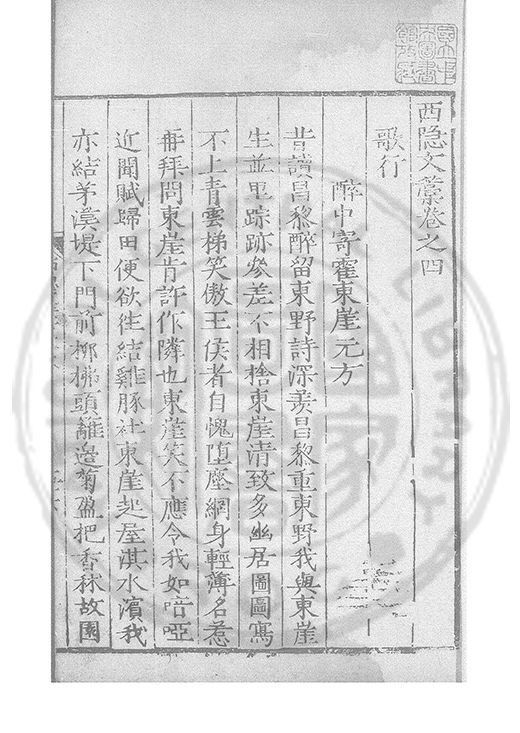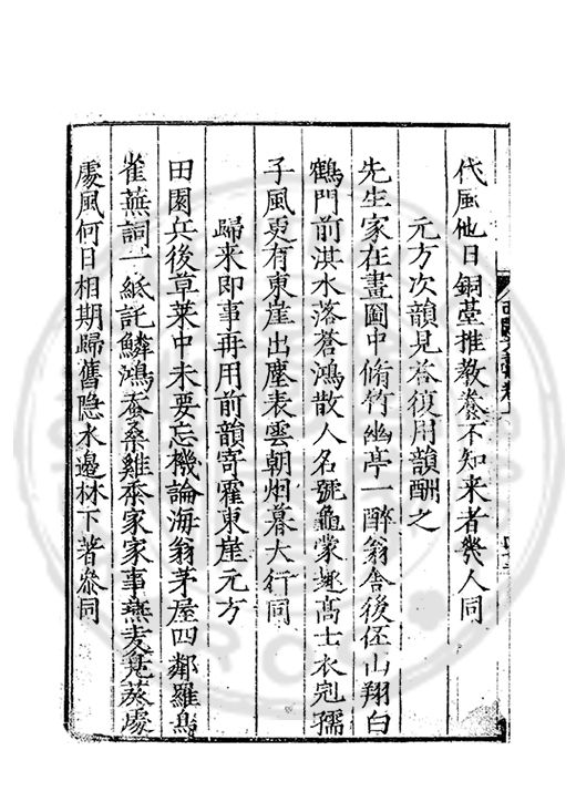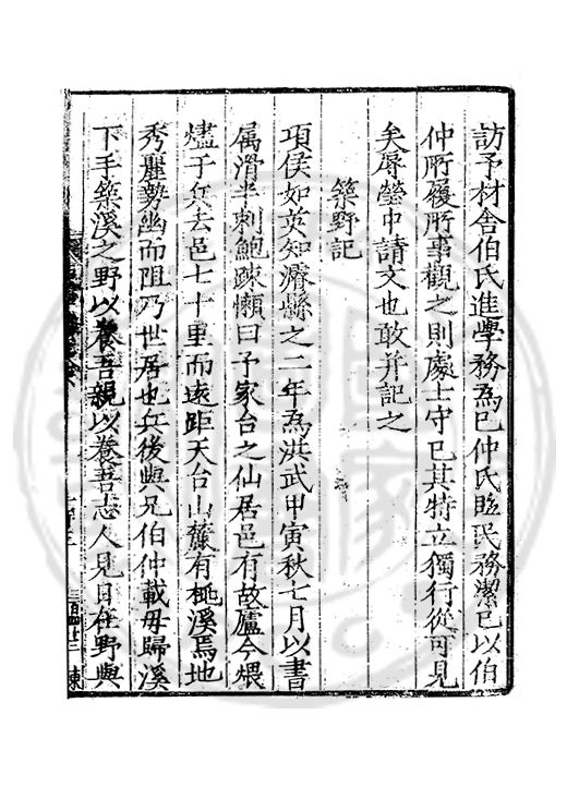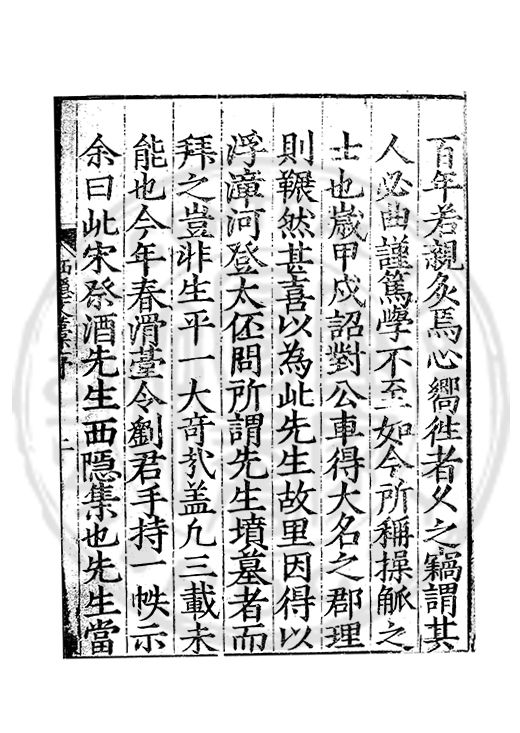 百年若親炙焉心嚮徃者乆之竊謂其人必曲謹篤學不至如今所稱操觚之士也歲甲戊詔對公車得大名之郡理則□然甚喜以為此先生故里因得以浮漳河登太伾問所謂先生墳墓者而拜之豈非生平一大竒哉盖几三載未能也今年春滑臺令劉君手持一帙示余曰此宋祭酒先生西隱集也先生當