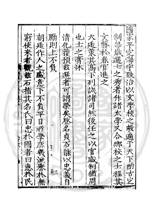 今海內操觚之士莫不迢駈左馬參翔曹劉盖斌斌然稱古矣藉今其乘盛隆之際分風教之符恐未必展猷布采犁然當國家寔用而稍有一二名能筴伐樹業者則又多木強少文於觀無當也豈非兼材之難哉余讀宋祭酒先生集盖有感云
