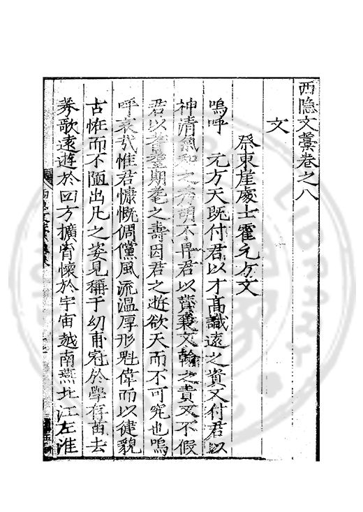 河前記美之盖磅礴欝積而西隠鍾焉則其發為文章豈淺鮮哉且其遭遘