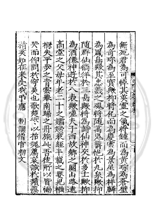 皇上倚注隆率先條約自其躬風雲氣槩氷霜容教行六館諸生從金石文章錦繡胷蔚為海內諸儒宗譽髦多士振文風棟梁我道伊誰功夫何一疾遂罹凶