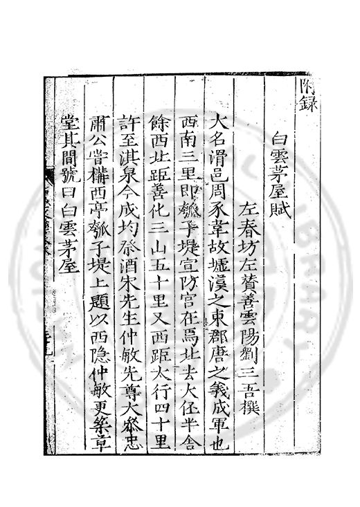 右白雲茅屋賦先曽祖洪武中為國子祭酒宋公作成化癸巳春予承乏來典華亭