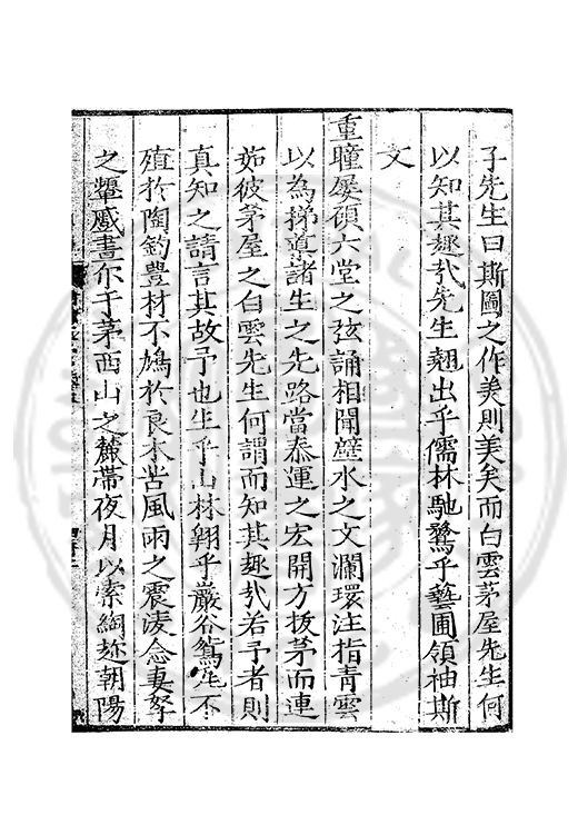 子先生曰斯圖之作美則美矣而白雲茅屋先生何以知其趣哉先生翹出乎儒林馳騖乎藝圃領袖斯文