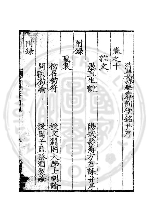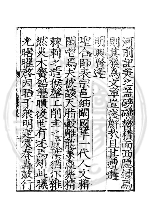 聖合師表宗邑紬闡國華一代人文藉閎鬯焉夫彼談天炙轂雕龍篆蠃斃精棘刺之造猴罄工削圭之成葉猶爾雜然災木簧鼔聾瞶後世有述焉矧此曦光曙曜啓因晤于衆眀霆震春轟皷行