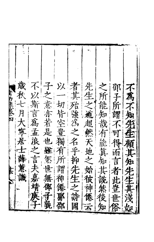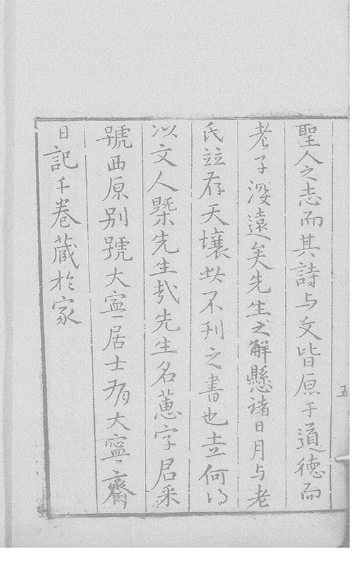 聖人之志而其詩與文皆□于道德而老子深遠矣先生之解懸諸日月與老氏竝存天壤□不刊之書也土□何□以文人□先生□先生名蕙字居采號西原別號大寫居士□大寧齋