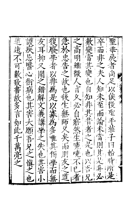 日之弊庶乎其可也或者又謂不當泥古且憚於輕變法令今夫徒知慕古而不知其不可行固為執滯之見若惟今之是遂謂終不可損益者則亦茍且因循之習耳兹欲畧倣古法而不至駭今之俗以求取士用人任官之得其效其何術而可願究言之以觀用世之學