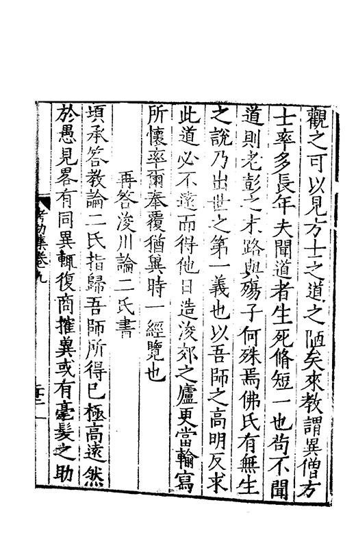 民同得之非異物也聖人同傳之非異術也迷其所同得故異見失其所同傳故異說是則同乎此者謂之同異乎此者謂之異予見後人之異矣未見老子之異也今夫老子之書盖皆性命之說多出於上古聖人之遺言故古者敘六家而謂之道家後世顧謂之異端矣道者脩之身以及天下天下之事無不統也後世直以道家為養生耳皆予所未喻也予又竊怪夫方士之言養生者徃徃穿鑿於性命之外不知長生
