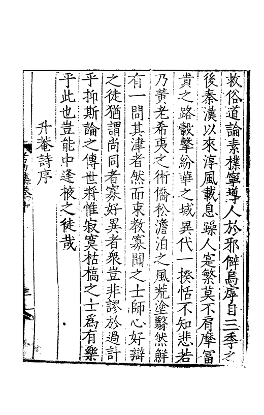 者天下益莫能知矣聞有高明好古之士澹泊學道之徒為能有味於其言然非研精覃思亦安能自知其性以真知老子之言哉始予蚤歲嗜神仙長生之術凡神仙家之說無不觀也晩讀老子而好之當是時予方蘄嚮聖人之道致思性命之理盖乆之而若有得考諸老子無異也廼知昔之所嗜者第方士之小術而非性命之學也復知老子之道惟導人反其天性而非異端之流也夫性命者道也天下之一本也生