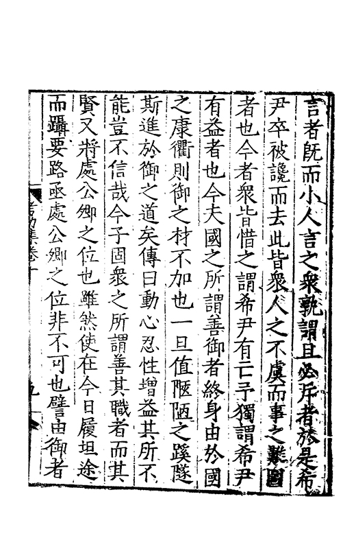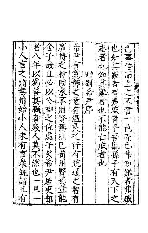 希尹有寛静之量有温良之行有疏通之智有廣博之材國家不用賢焉則巳茍用賢焉豈能舍子哉且必以□卿之位處子矣希尹居吏部者八年以為善其職者衆人莫不然也一旦一小人言之謫壽州始小人未有言衆孰謂且有