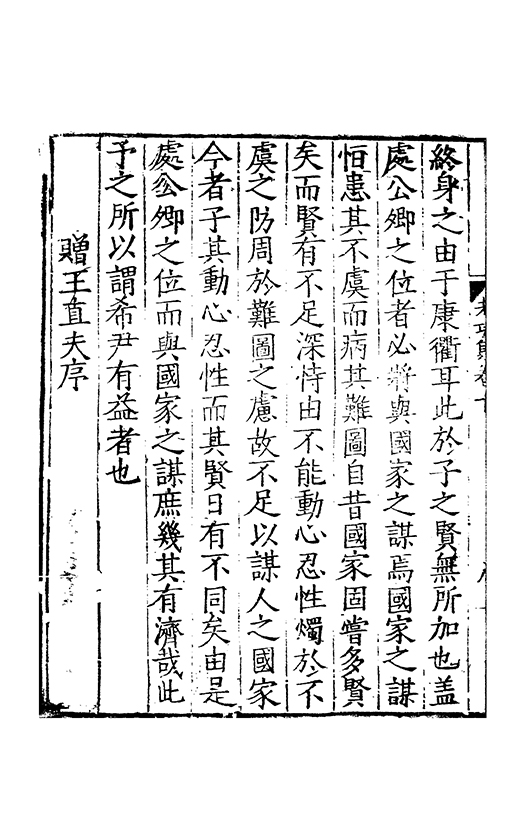 終身之由于康衢耳此於子之賢無所加也盖處公卿之位者必將與國家之謀焉國家之謀恒患其不虞而病其難圖自昔國家固嘗多賢矣而賢有不足深恃由不能動心忍性燭於不虞之防周於難圖之慮故不足以謀人之國家今者子其動心忍性而其賢日有不同矣由是處公卿之位而與國家之謀庶幾其有濟哉此予之所以謂希尹有益者也