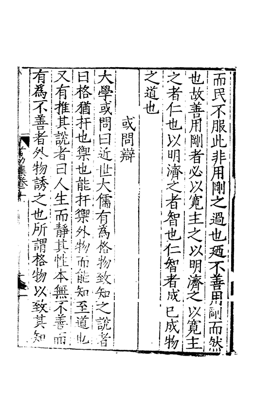 者亦曰扞去外物之誘而本然之善自明耳朱子荅而辯之其說詳矣愚竊思之猶有一二未盡者輙為說辯之以足朱子之意云愚觀或者禦物知道之說大抵本於樂記樂記之言不無偏駁或者又附會之以言大學之道樂記未可遽辯今姑辯或者之說茍覈其義則記之是非亦從可知矣予惟或者之意盖以為天命之性具於人心方其靜而未發本真不雜未嘗有不善也惟其感物而動為物誘之於是始為不善