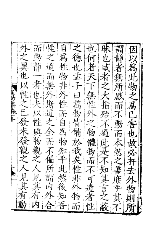 之失其性而為不善者其根本之害皆作於其心安得歸罪於外物必一切扞去之為快也若如或者之説則不惟使人昧於本原而不知用力之地將徒使人勞於禦物而不免有過之歸矣或者之言近世有惑之者故不可不辯