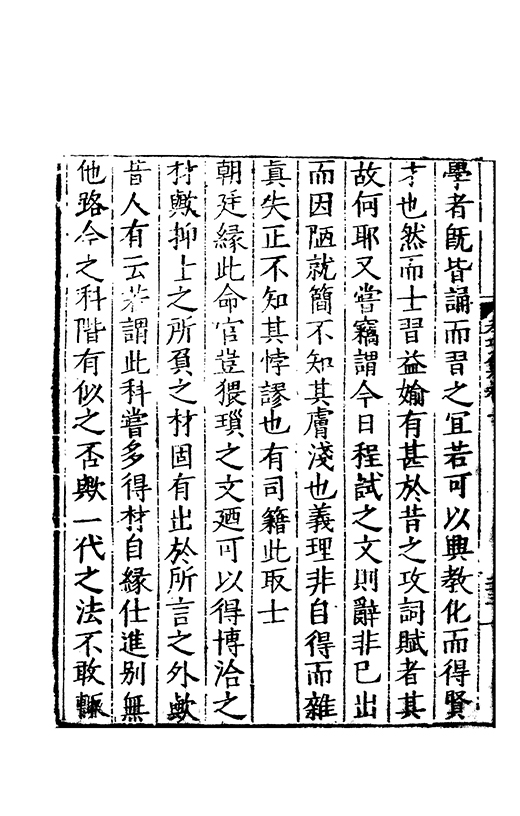 朝廷縁此命官豈猥瑣之文廼可以得博洽之材歟抑士之所負之材固有出於所言之外歟昔人有云若謂此科嘗多得材自縁仕進别無他路今之科階有似之否歟一代之法不敢輙