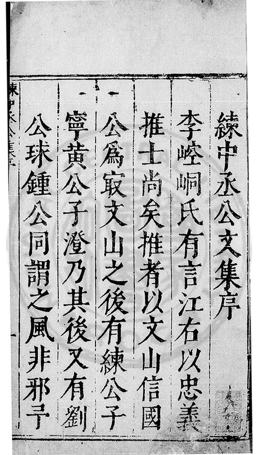 李崆峒氏有言江右以忠義推士尚矣推者以文山信國公為取文山之後有練公子寧黃公子澄乃其後又有劉公球鍾公同謂之風非邪予